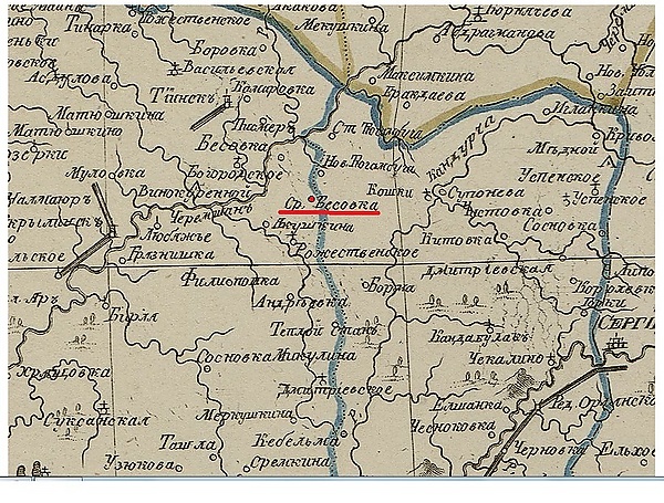 На карте «Симбирского наместничества из атласа горного училища» 1792 года обозначена только Средняя Бесовка.