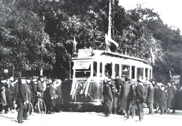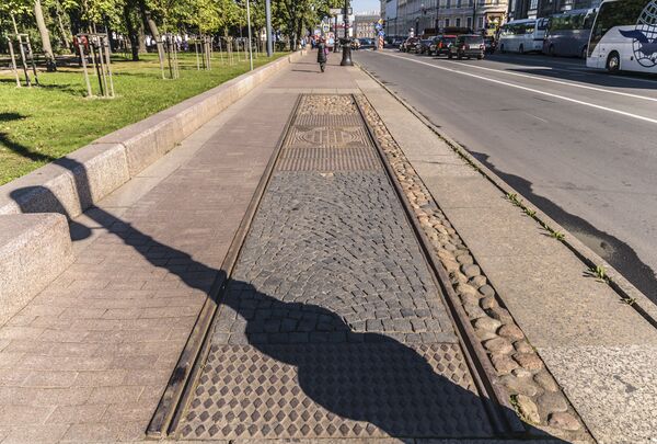 - Мемориальная плита на месте первой линии петербургского трамвая (2007). Находится на тротуаре вдоль Адмиралтейского проспекта[17]. Надпись на плите: «Здесь проходила первая линия петербургского трамвая „Главный Штаб — 8-я линия В. О.“ открыта 29 (16) октября 1907 года».