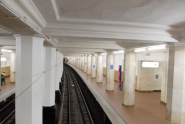 На станции 3 ряда по 30 восьмиугольных в сечении колонн в каждом. Колонны боковых рядов также облицованы мрамором. Центральный ряд колонн намеренно не был облицован, чтобы не акцентировать внимание на путях, проложенных в центре платформенного зала[11].