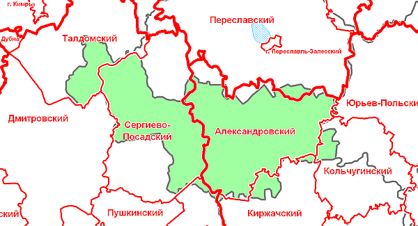 Располагался на территории современных Александровского, части Кольчугинского и Киржачского районов Владимирской области, части Сергиево-Посадского и Талдомского районов Московской области.