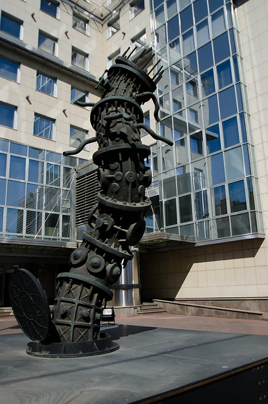 - Одна из работ Александрова — «Восставшие коммуникации» — установлена у входа в головной офис «Метробанка» на улице Можайский Вал. Считается одиним из самых необычных и загадочных памятников Москвы[10][11]. Сотрудники считают эту скульптуру символом банка[12].
