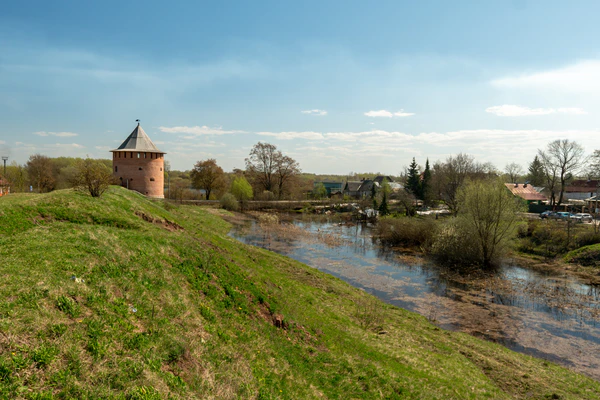 - Длина пути от речной пристани «Великий Новгород», расположенной у стен Новгородского детинца, до Алексеевской башни составляет порядка 1,2 км. Двигаться по Софийской набережной и Троицкой улице.
