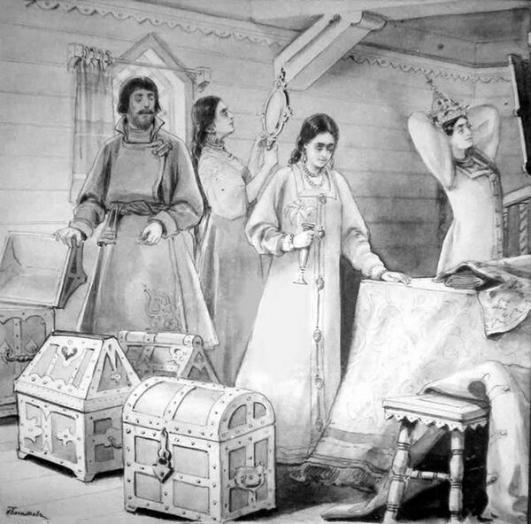 Эту сказку, которую слыхал я в продолжение нескольких годов не один десяток раз, потому что она мне очень нравилась, впоследствии выучил я наизусть и сам сказывал её, со всеми прибаутками, ужимками, оханьем и вздыханьем Пелагеи. Я так хорошо её передразнивал, что все домашние хохотали, слушая меня. Разумеется, потом я забыл свой рассказ; но теперь, восстановляя давно прошедшее в моей памяти, я неожиданно наткнулся на груду обломков этой сказки; много слов и выражений ожило для меня, и я попытался вспомнить её. Странное сочетание восточного вымысла, восточной постройки и многих, очевидно переводных, выражений с приемами, образами и народною нашею речью, следы прикосновенья разных сказочников и сказочниц, — показались мне стоящими вниманья.