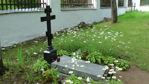 Точное место захоронения его на Братском кладбище Валаамского монастыря не установлено, но сохранилось гранитное надгробие, на котором высечена надпись (с сохранением орфографии и грамматики оригинала):