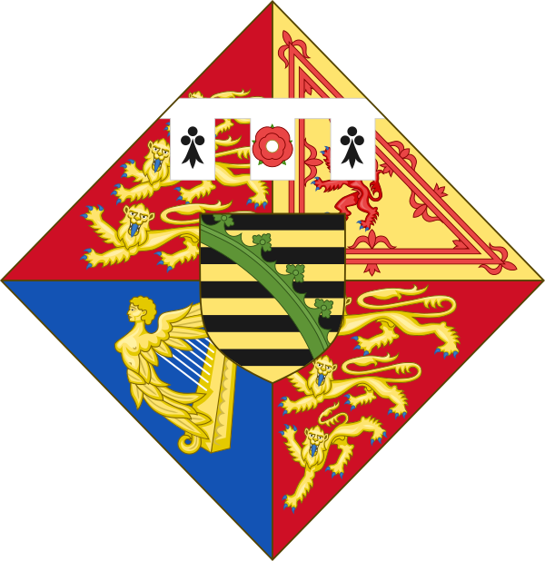 Дамский (ромбический) щит, увенчанный короной, соответствующей достоинству детей монарха, обременён серебряным титлом с тремя зубцами. Щит четверочастный: в первой и четвёртой частях — в червлёном поле три золотых вооружённых лазурью леопарда (идущих льва настороже), один над другим [Англия]; во второй части — в золотом поле червлёный, вооружённый лазурью лев, окружённый двойной процветшей и противопроцветшей внутренней каймой [Шотландия]; в третьей части — в лазоревом поле золотая с серебряными струнами арфа [Ирландия])[78].