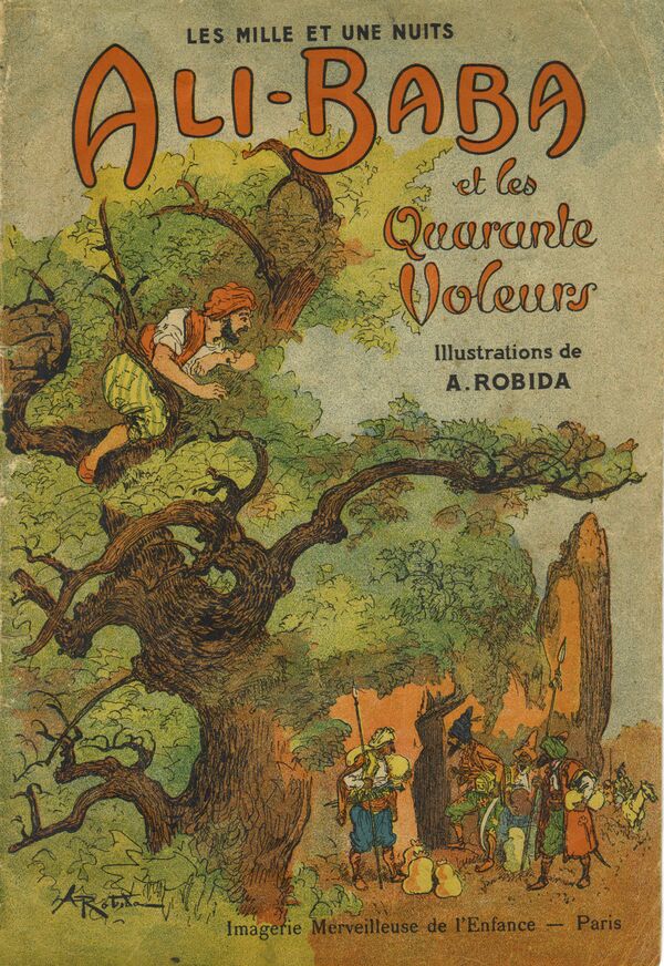 Традиционно считается, что Галлан записал сказку во время путешествия по Ближнему Востоку, однако в арабских странах следов сюжета не сохранилось[1]. Наиболее ранняя версия написана на французском языке пером самого Галлана[2]. В дневнике своего путешествия Галлан отметил, что две сказки — про Ходжа-Бабу и про десять визирей — были рассказаны ему 27 мая 1709 года монахом-маронитом из Алеппо[1]. Французский литератор значительно расширил сказку, ввёл много новых подробностей и переименовал главного героя в Али-Бабу.