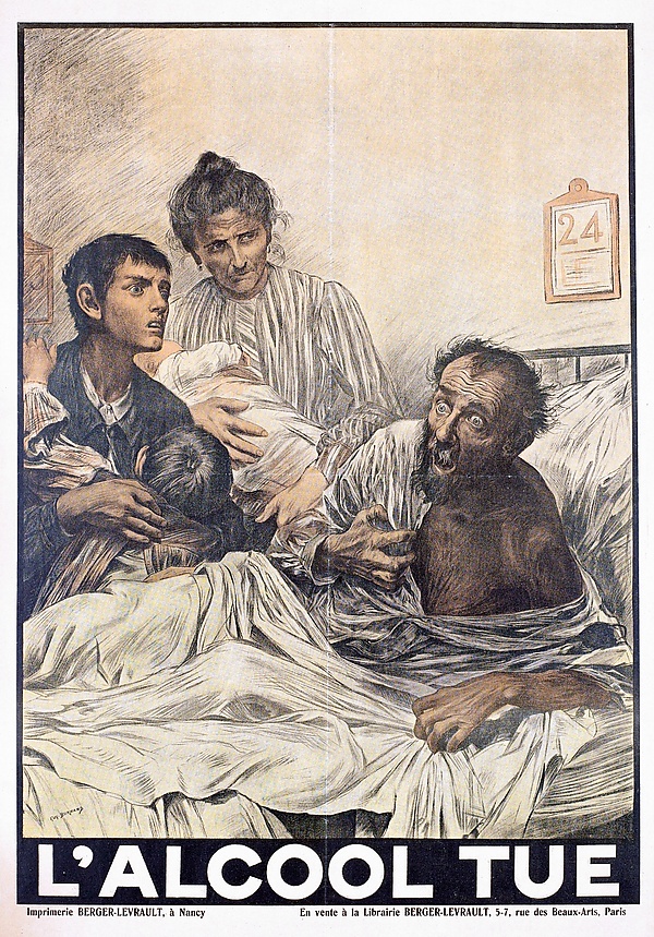 Алкогольный делирий возникает на II–III стадии алкоголизма в период прекращения пьянства[2]. Выражается бредом, обусловленным зрительными, слуховыми и/или тактильными галлюцинациями, сопровождается ознобом и повышением температуры. Галлюцинации обычно носят угрожающий характер, часто представлены в образе мелких опасных существ (насекомые, черти). Иногда заканчивается смертью. Основную опасность при делирии представляет риск самоповреждения.