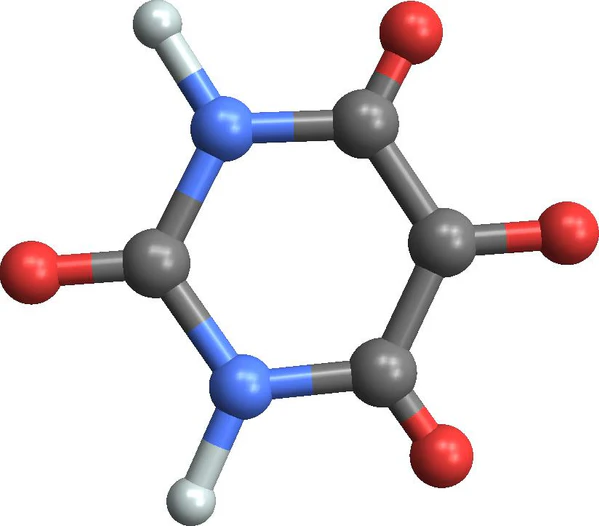 Аллоксан образуется при внесении мочевой кислоты малыми порциями в охлажденную концентрированную азотную кислоту или при постепенном прибавлении бертолетовой соли к смеси мочевой кислоты с соляной.