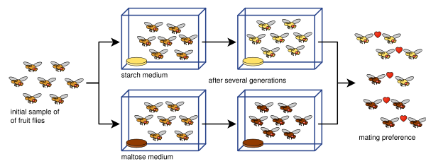 Таким образом, на субпопуляции не действуют одни и те же факторы отбора, и связанные с ними давления отбора также различаются. Из-за географической обособленности отдельных частей ареала они развиваются всё более независимо друг от друга. Если генетические различия становятся настолько большими, что особи двух региональных групп больше не могут производить плодовитое потомство, исходный вид аллопатрически разделяется на два или более новых вида.