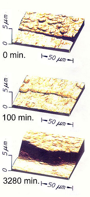 В этих случаях кубическая и гексагональные решётки могут быть случайно смешаны, атомный слой за атомным слоем, потому что нет времени для одной из кристаллических геометрий расти за счёт другой до того, как атомы заморожены на месте в материале. Аморфные DLC могут привести к материалам, которые не имеют дальний кристаллический порядок. Без дальнего порядка нет хрупких плоскостей трещин. Поэтому такие покрытия являются гибкими и конформно покрытыми к основной форме, но тоже время прочными, как алмаз. На самом деле это свойство было использовано для изучения износа атом за атомом на наноуровне в DLC.[3]