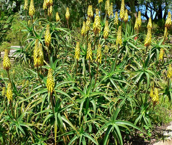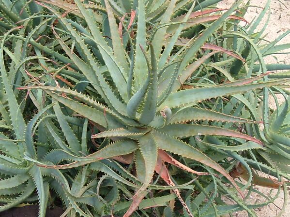 - Aloe vera — Алоэ настоящее, или Алоэ вера, вид с Канарских островов. Растение с коротким стеблем и розеткой из пёстрых колючих листьев, достигающей 60 см в диаметре. Широко используется в медицине и косметике. Популярное комнатное растение.