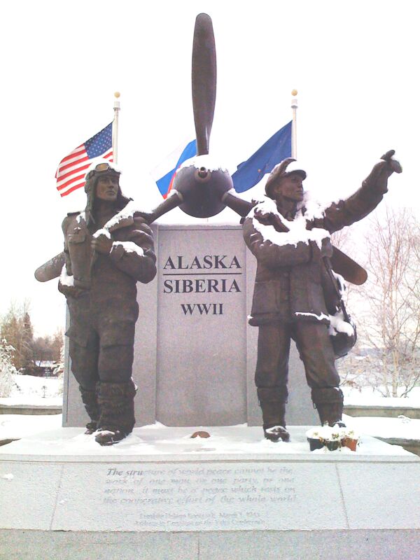 - Уменьшенная копия мемориала в Фэрбанксе (Аляска, США) в Якутске, музей ДОСААФ.