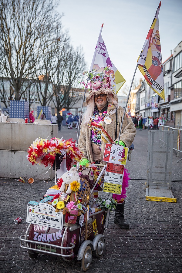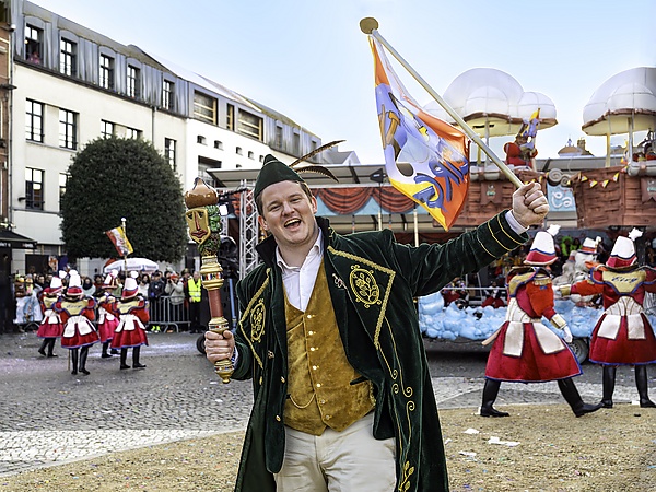 Парад, который проходит в понедельник, отличается от воскресного более свободной атмосферой: порядок следования платформ не так строг. Вечером в соответствии с баллами, полученными в воскресенье, участникам карнавала вручают призы. Кроме того, в этот день исполняется традиционный «Танец с мётлами», в котором принимают участие традиционные герои бельгийских карнавалов — Жили[7]. После этого проходит «Метание луковиц»: Принц карнавала и члены праздничного комитета с балкона ратуши бросают в толпу конфеты в форме луковиц, на которых указаны номера призов. Особый приз — «золотая луковица», дизайн которой разрабатывается отдельно для каждого карнавала.