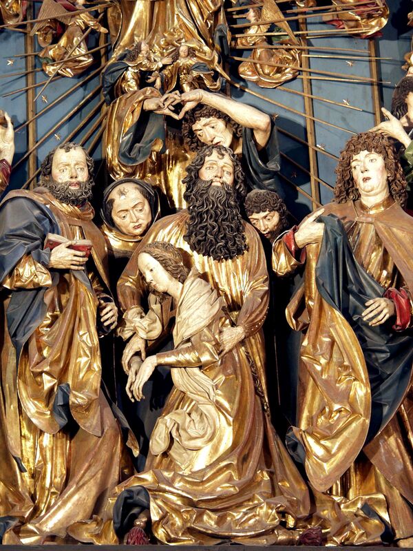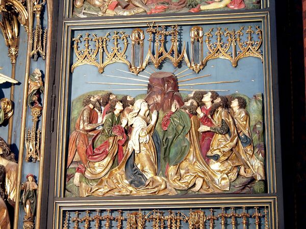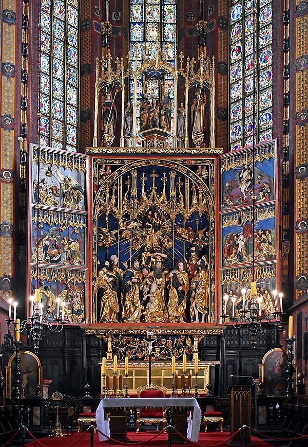 Вырезанный из липы, алтарь имеет размер 13 метров в высоту, 11 метров в ширину. Наибольшая фигура алтаря имеет размер 2,7 метров. Алтарь является самым большим из средневековых алтарей Европы и состоит из центрального панно и четырёх створок (два из которых можно увидеть, когда алтарь полностью закрыт). В нижней части центрального панно представлено Успение Пресвятой Богородицы, которая окружена апостолами, а в верхней части — Взятие Богородицы на небо. В самом верху центрального панно, под ажурным балдахином изображается коронование Девы Марии Пресвятой Троицей. На створках изображены сцены из жизни Богородицы: Благовещение, Рождество Христово, Поклонение волхвов (левая створка), Воскресение Христово, Вознесение Христа и Сошествие Святого Духа. У подножия алтаря изображается родословие Христа. Фигуры на главном панно алтаря своими размерами значительно превышают человеческий рост.