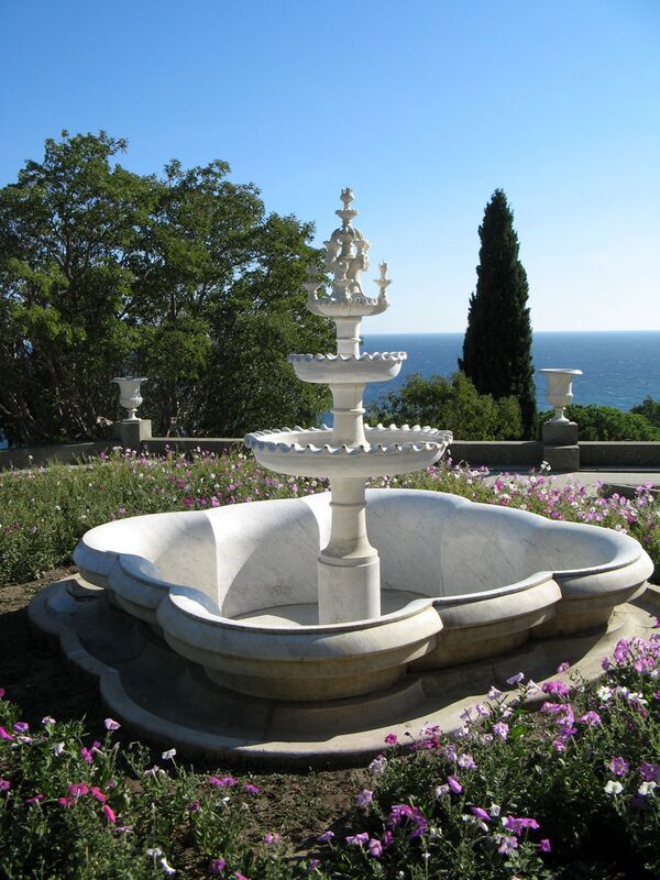 - «Фонтан Мария», который также называют «Фонтаном слёз», поскольку он повторяет концепцию Бахчисарайского фонтана. Вода проходит 16 каменных чаш, и звук каждой капли отчётливо слышен[7].
