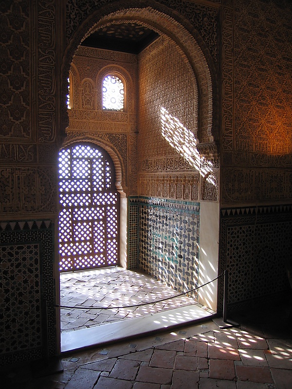 - Золотая комната (Cuarto dorado). Была так названа за наборный резной деревянный потолок в стиле мудехар, расписанный и позолоченный (как и стены) уже при испанских королях. При эмирах, вероятно, в этой комнате сидели писцы и секретари, она была приемной. На втором этаже летом 1526 г. жила Изабелла Португальская, жена Карла V, а после — губернаторы и алькальды. Вокруг комнаты — круговая галерея, служившая дозорным путём для стражников.