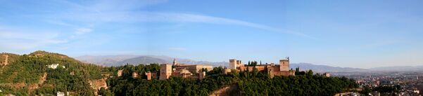 Альгáмбра (исп. Alhambra, от араб. الحمراء аль-хамра — «красная»[4]) — архитектурно-парковый ансамбль, расположенный на холмистой террасе в восточной части города Гранада в Южной Испании. Основное развитие получил во времена правления мусульманской династии Насридов (1230—1492), при которых Гранада стала столицей Гранадского эмирата на Иберийском полуострове, а Альгамбра — их резиденцией (сохранившиеся дворцы относятся преимущественно к XIV веку). В состав обширного комплекса, заключенного в крепостные стены с башнями, входили также мечети, жилые дома, бани, сады, склады, кладбище. В настоящее время является музеем исламской архитектуры.