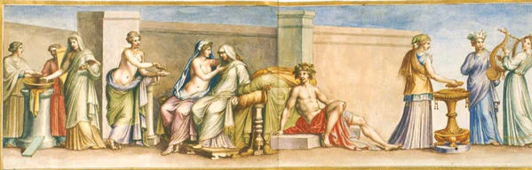 Немецкий археолог и филолог К. А. Бёттигер предположил, что на фреске изображена не обычная свадьба, а, как и в росписях знаменитой Виллы Мистерий, мистическое бракосочетание, являющееся частью дионисийского культа. Композиция, таким образом, представляет посвящение в жрицы.