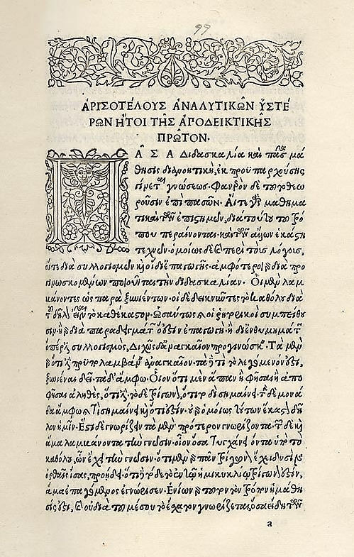В 1490 году Мануций поселился в Венеции. Город в то время был не только крупным издательским центром, он имел также огромную библиотеку греческих Манускриптов из Константинополя, и в нем проживали греки, которые могли помочь с переводом. Вскоре по приезде Мануций напечатал Геро и Леандр Мусея Грамматика, Galeomyomachia и греческую Псалтирь. Он назвал их «Предтечи греческой библиотеки». Он начал собирать вокруг себя греческих филологов и наборщиков, набрал в типографию 30 работников-греков, дома говорил по-гречески. На греческом языке давались и указания наборщикам и переплётчикам, на нём же писались предисловия к изданиям. Кипрские греки проверяли листы книг, вычитывали гранки, давали образцы каллиграфии для греческого шрифта.