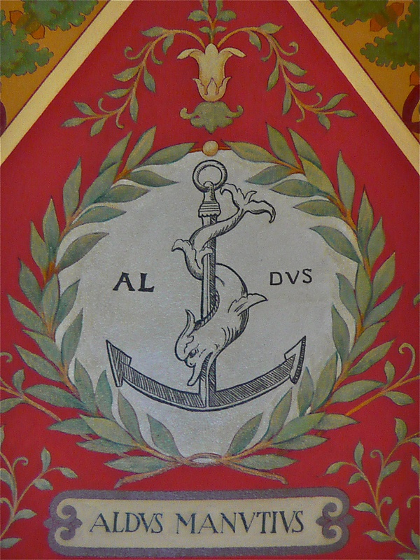 В 1501 году Альд начал использовать свою издательскую эмблему в виде дельфина, обвивающегося вокруг якоря. Однако его издания классиков были настолько популярны, что эмблему «Дельфин и якорь» почти немедленно украли французские и итальянские издатели. Альд позаимствовал рисунок с реверса античных римских монет, выпущенных во время правления императоров Тита и Домициана (80—82). Эмблема «Дельфин и якорь» связана с девизом «Festina lente» (Поспешай медленно), который Альд начал использовать еще в 1499 году, когда получил римскую монету с этим девизом и символом от Пьетро Бембо.