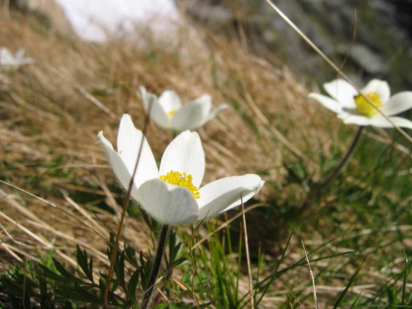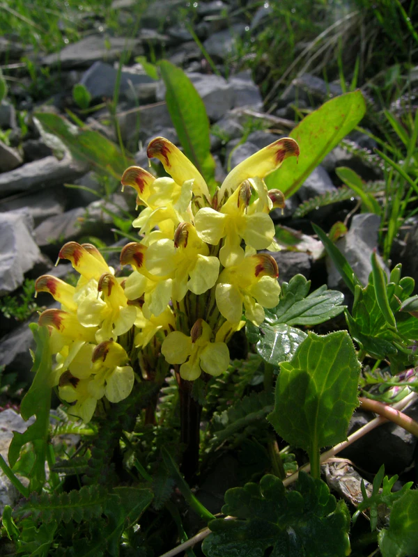 В районах Альпийских гор учёными выявлено 13 000 видов растений[17]. Альпийские растения сгруппированы по среде обитания и типу почвы, который может быть известковым (известняк) или не известковым. Растения обитают в различных диапазонах природных условий: от луга, болота, леса (лиственные и хвойные) и районов, не затронутых осыпями и лавинами, до скал и хребтов[18]. Благодаря наличию высотной поясности разнообразие и специфика альпийской флоры, в основном, зависит от высоты над уровнем моря. В Альпах встречаются самые разные биотопы — луга, которые покрыты цветами ярких расцветок в долинах, и высокогорные районы, обладающие скромной растительностью. До высоты 2400 метров над уровнем моря растут хвойные деревья. Выше, до 3200 метров, ещё встречаются карликовые деревья. Одно из самых известных горных растений — это ледниковый лютик, который является рекордсменом среди растений и встречается до высоты 4200 метров. Небольшие группы растений встречаются на высоте 2800 метров. Многие из них, например, незабудочник и смолка, имеют особую подушковидную форму, которая защищает их от травоядных животных, живущих на этих высотах, и потери влаги. Таким образом молодые побеги также защищены от ветра и мороза. Известный эдельвейс покрыт слоем белых волосков, которые хорошо удерживают тепло.