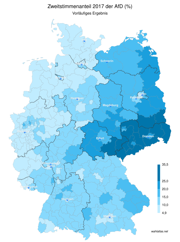 Традиционно голосующие за АдГ — жители бывшей ГДР (до 60—70 % избирателей по полу — мужчины).
