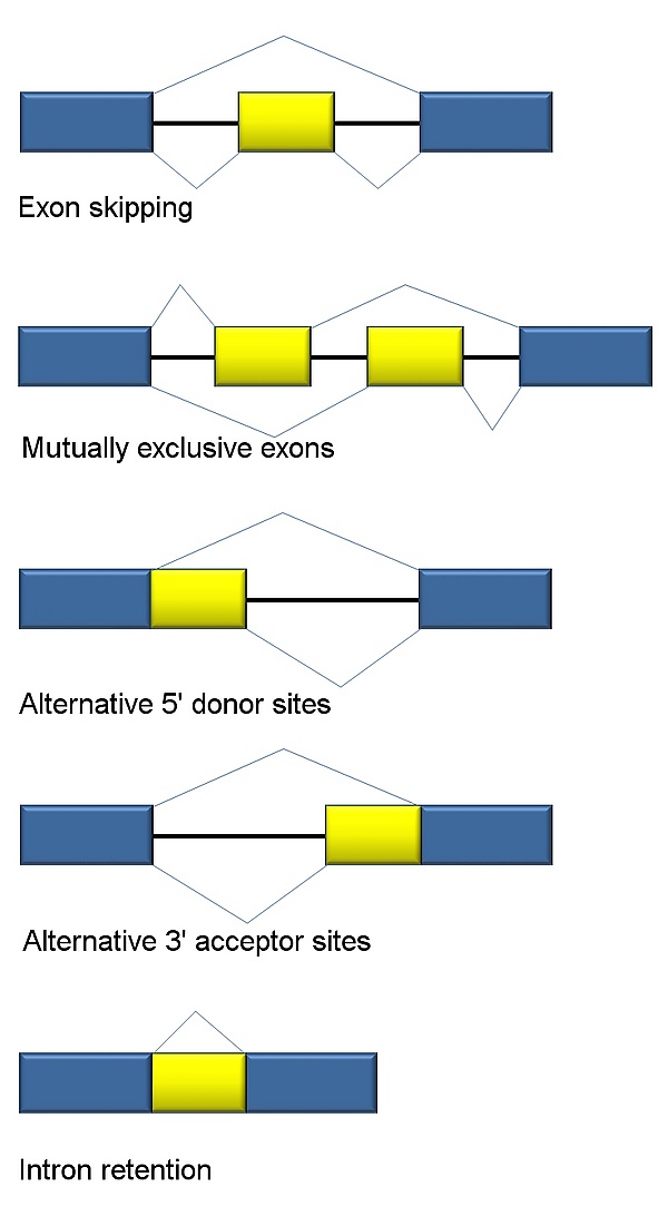 Существует пять моделей альтернативного сплайсинга[3][4][5][21][22]: