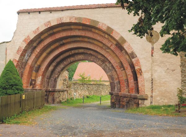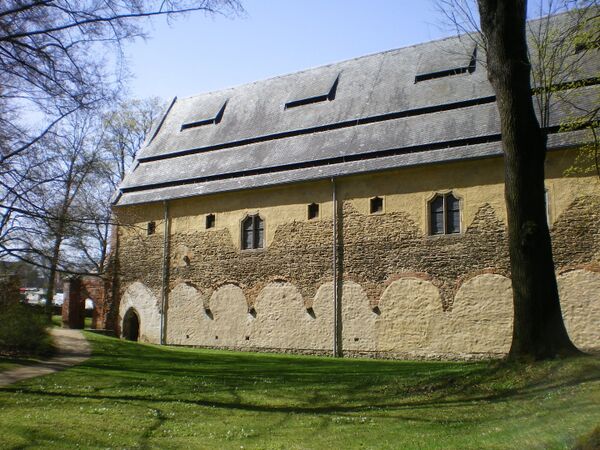Для строительства основанного майсенским маркгафом Отто II монастыря император Фридрих Барбаросса выделил земельный надел на реке Фрайбергер-Мульде, однако монахи-цистерцианцы отвергли выбор Бёрингена (в настоящее время — в составе общины Штригисталь), и возведение зданий конвента началось к западу от Носсена. В 1175 году состоялось его заселение монахами из аббатства Пфорта под Наумбургом. Примерно в это же время началось сооружение монастырской церкви, освящённой в 1198 году, и прочих зданий монастыря, завершённых в период с 1180 до 1230 года (среди них здания монашеского общежития и круглый ступенчатый портал, оформлявший главные ворота комплекса).