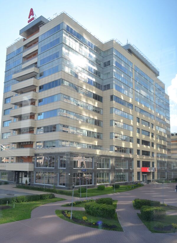 - логотипом стала красная буква «А» с красной полоской под ней и слова «Альфа Банк» красными буквами и жирным шрифтом с большими буквами «А» и «Б». Логотип разработан в Студии Артемия Лебедева[31]. До этого логотип представлял собой голубой круг из полосок и белой буквы «А», внизу слово «Альфа-Банк» было написано большими бордовыми буквами.