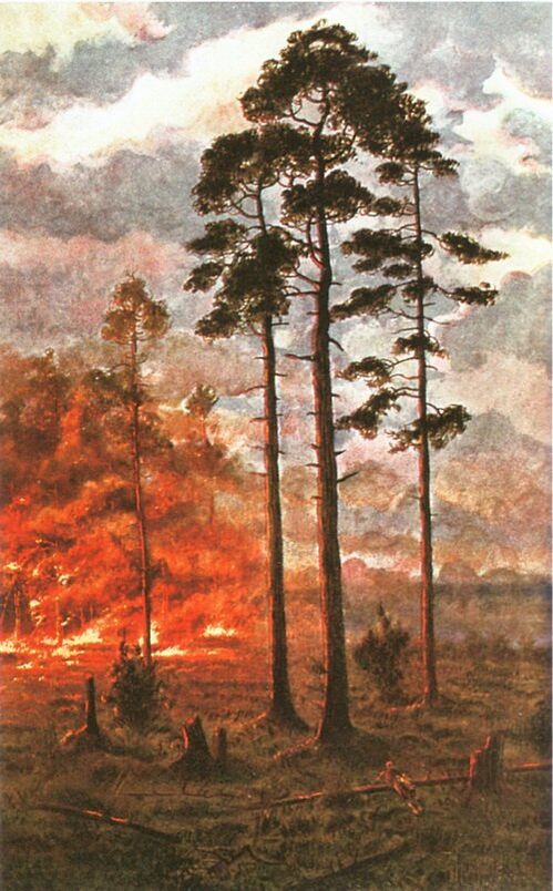 Однако далёким от сказочного оказывается не только моральный облик героини. Поэт полностью переворачивает традиционный сказочный сюжет. В сказке положительный герой, оказавшись в лесу, с честью проходит испытания, опираясь на помощь других существ. В стихотворении И. А. Бунина героиня, не встречая на пути препятствий, создаёт беду для себя и других просто так, от скуки: она разжигает костёр, который уничтожает лес «на тыщу вёрст, до пёнушка» и, очевидно, саму героиню: