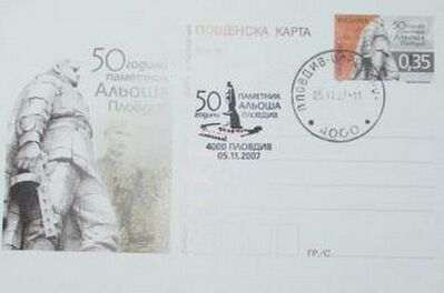 5 ноября 2007 года в Пловдиве состоялась торжественная церемония, посвящённая 50-летию создания памятника «Алёша». По этому случаю была выпущена юбилейная марка малым тиражом в 650 экземпляров и почтовая карточка. Марка и карточка были погашены специальным штемпелем. В церемонии гашения приняли участие председатель государственного агентства по информационным технологиям и связи Пламен Вачков и глава администрации Пловдива Тодор Петков.