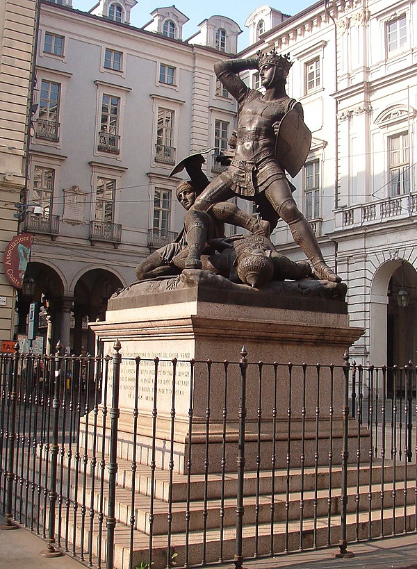 В июле 1372 года Амадей выступил против миланских Дом Висконти в составе коалиции, во главе которой стояли папа Григорий XI, правители Монферрата, Эсте и Каррары, королева Неаполя, а также Генуэзская и Флорентийская республики. Амадею удалось защитить от миланцев город Асти и при помощи Джона Хоквуда разбить их войска. Удовлетворившись этими успехами Амадей вышел из коалиции и помирился с Висконти. Вскоре он присоединил к своим владениям существенную часть Монферрата, хотя город Асти за собой сохранил Джан Галеаццо Висконти, приходившийся Амадею племянником.