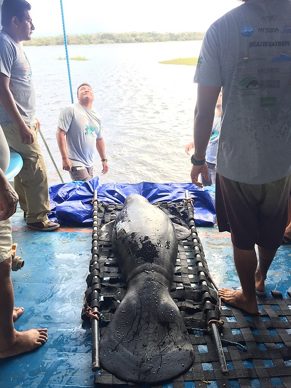 Существует несколько организаций, занимающихся охраной водных млекопитающих и уходом за осиротевшими детёнышами, пострадавшими от незаконной охоты. Лаборатория водных млекопитающих (LMA/INPA), например, разработала специальную формулу молока для таких детёнышей. Другие организации, такие как Центр исследований и сохранения водных млекопитающих (CPPMA/Manaus Energia S.A.) и Центр водных млекопитающих (CMA/ICMBio), занимались спасением и реабилитацией осиротевших детёнышей, всего было содержано 70 особей. Институт устойчивого развития Мамирауа (IDSM) также реализовал такую инициативу, размещая детёнышей в плавучих резервуарах в естественной среде с участием местного сообщества. Когда особи достигают стадии субадультов, их возвращают в природу; так, в 2007 году CMA выпустил на волю самца и самку-субадультов в окрестностях Сантрена (Пара), самка была отслежена. Другой случай — реинтродукция двух самцов, проведённая INPA в 2008 году. Самый крупный выпуск произошёл в 2019 году благодаря CMA, INPA и AMPA (Ассоциация друзей ламантина): 12 особей были выпущены в Резервате устойчивого развития Пигаcу-Пурус, где их встретило местное сообщество.
