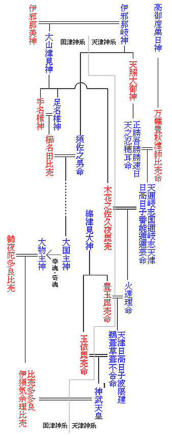 | Братья и сёстры | Цукиёми[1], Хируко[1], Сусаноо[1] и Кагуцути[1] |