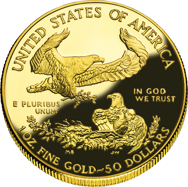 На реверсе изображён орёл, садящийся в гнездо к орлице с птенцами. Над орлом расположена надпись «UNITED STATES OF AMERICA». Слева и справа от гнезда расположены надписи «E Pluribus Unum» (с лат. — «Из многих единое»), и «In God We Trust» (с англ. — «На Бога уповаем»). Под гнездом указан номинал монеты, вес монеты, и надпись «FINE GOLD» (чистое золото).