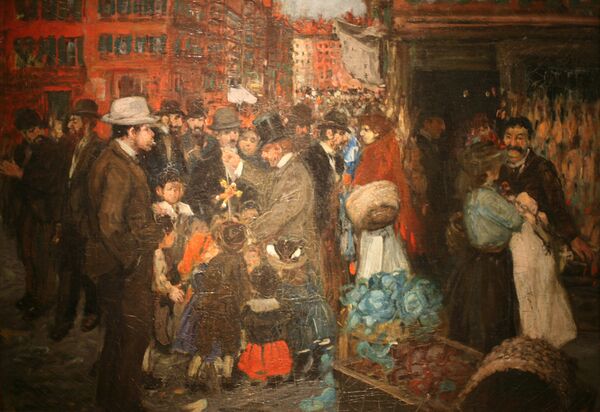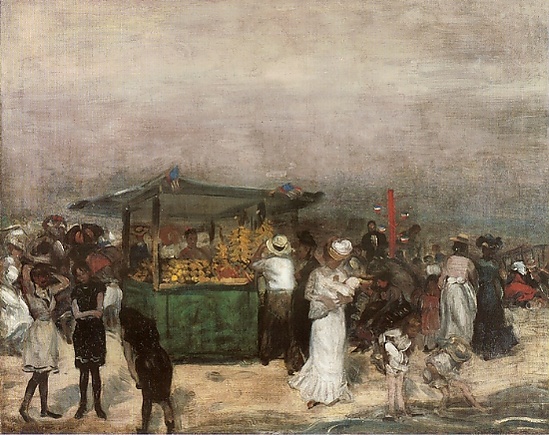Роберт Генри (1865—1921) был художником реалистом, членом школы Ashcan School. Анри любил рисовать сцены из жизни людей. Он изображал лица, незнакомцев, быстро проходящих по улицам больших и малых городов. Работам Анри характерны энергичные и смелые мазки импасто, которые подчеркивают материальность красок. Анри оказал влияние на художников Глакенс (Glackens), Лукс, Шинн и Слоан.[2] В 1906 году он был избран членом Национальной академии дизайна. .