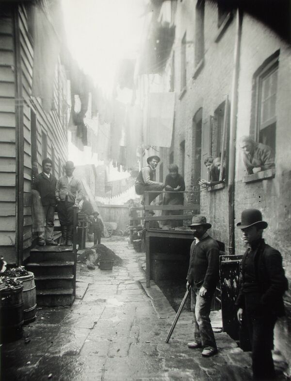 Якоб август Риис (1849—1914) — датско-американский «выгребатель мусора» журналист, фотограф и реформатор, родившийся в Рибе, Дания. В нём сочетаются дарования фотографа и журналиста. Он помог с реализацией модели « доходных домов» в Нью-Йорке. Как один из первых фотографов, использовавшим фото вспышку, он считается пионером в области фотографии.[10]