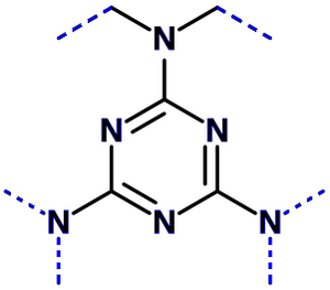 Реакция взаимодействия альдегида или амида с соединениями, содержащими аминогруппы, протекает в две стадии. На первой так или иначе образуются метилольные соединения и их производные. На следующей эти метилольные соединения вступают между собой или со свободными атомами водорода в реакцию поликонденсации, в результате которой образуется смола. При дальнейшем нагревании смола необратимо твердеет, образуя нерегулярно разветвленный трехмерный сшитый полимер, что и позволяет использовать её в качестве материала.