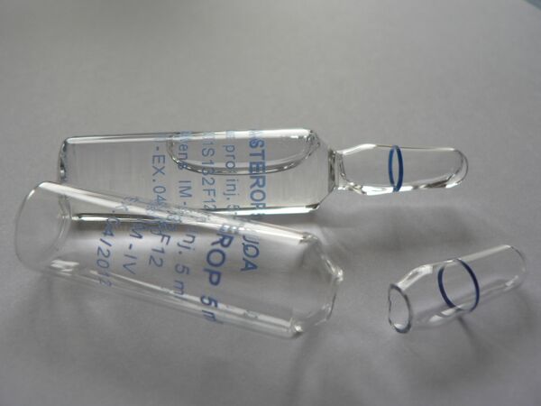 В медицинских целях ампула применяется для хранения лекарственных препаратов в стерильном состоянии, имеет удлинённое тонкое горлышко.