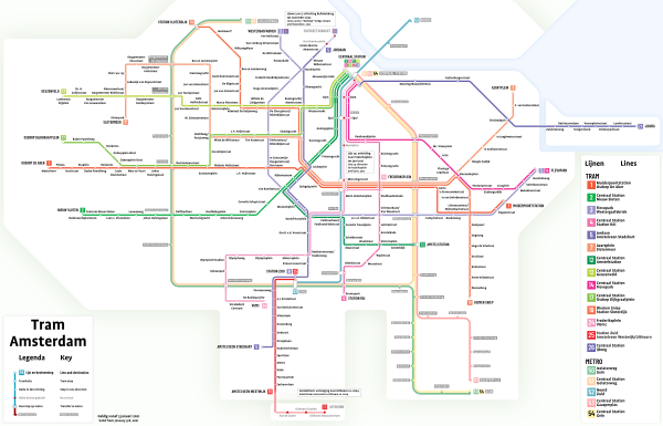 Амстердам — единственный город в Нидерландах, где наряду с номерами используется цветная окраска[1] для различения линий, которых на 2014 год насчитывалось 15: