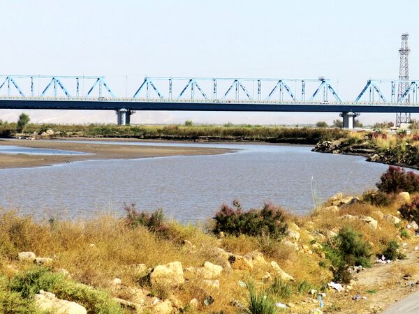 Панорама реки между Бухарой и Ургенчем в Узбекистане. На заднем плане — территория Туркмении. Снимок сделан в начале апреля 2016 года