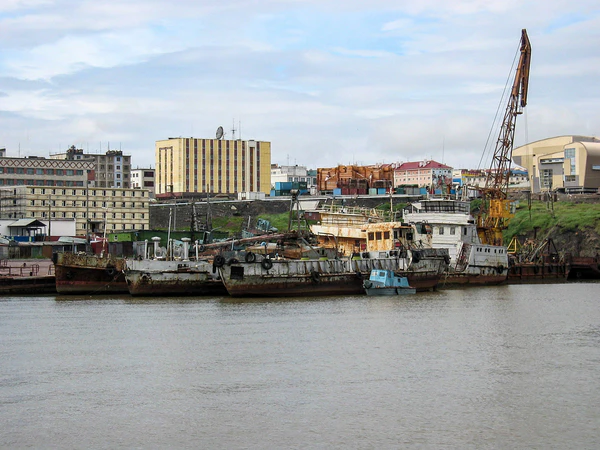 Самый восточный город России. Большинство его зданий стоит на сваях из-за многолетней мерзлоты.