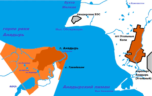 Город Анадырь с селом Тавайваам в рамках организации местного самоуправления образует отдельный городской округ[13].