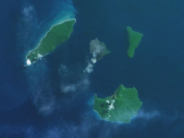 Вулкан Кракатау продолжил извергаться на центральном острове группы — на Анак-Кракатау, и постоянно увеличивается.