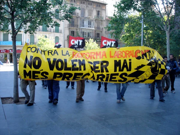 Анархо-синдикалистское профсоюзное движение традиционно наиболее сильно развито в Испании. После смерти диктатора Франко в 1976 году здесь началось массовое возрождение анархизма. На первое постфранкистское собрание НКТ пришло порядка 500 000 человек[177]. Правда впоследствии в НКТ произошло несколько расколов, в первую очередь по вопросу о выборах в комитеты предприятий[178]. Так что в итоге на сегодняшний день в Испании действует два основных анархо-синдикалистских объединения: НКТ-МАТ, в котором состоит порядка 10—15 тысяч человек, и ВКТ, в котором состоит около 60 тысяч человек. Соответственно НКТ-МАТ выступают против участия в этих выборах, а ВКТ в них активно участвуют[179].