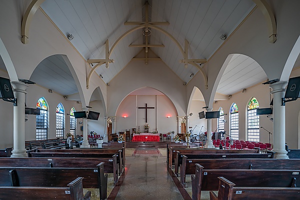 Внутреннее убранство отличается сдержанностью и простотой, характерной для англиканских храмов.