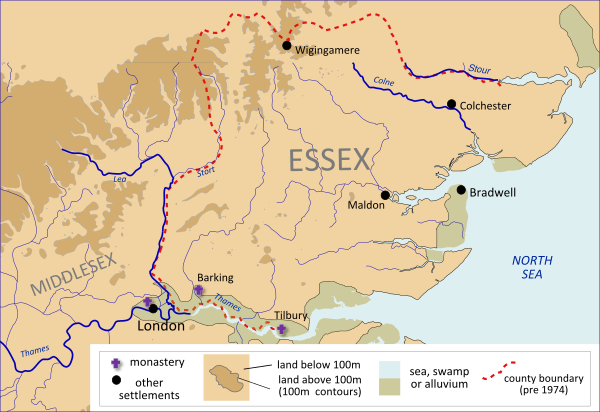 Почти не существует достоверных доказательств того, что происходило вокруг Лондона в период с 450 по 600 года. Хотя ранние англосаксонские поселенцы избегали зоны, прилегающей к Лондиниуму, в небольших масштабах существовали поселения по обе стороны реки. Хотя не существует современных исторических данных, но область в течение некоторого времени должна была выполнять роль границы между англосаксами и бриттами[2].