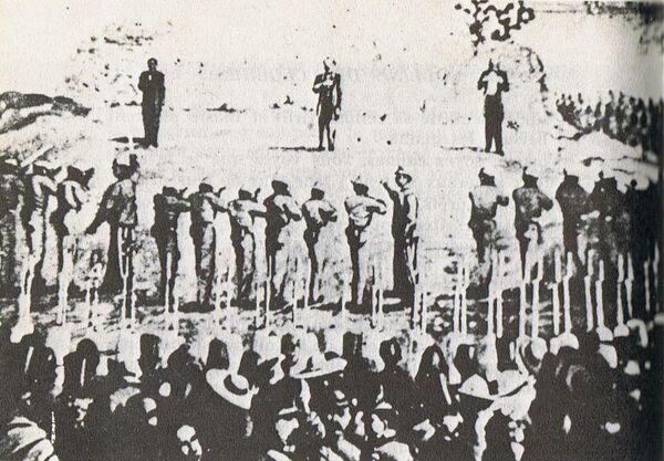 Император был предан военно-полевому суду и в соответствии с декретом от 25 января 1862 года приговорён к расстрелу[56]. Множество коронованных особ Европы[57], а также другие известные личности (включая Виктора Гюго и Джузеппе Гарибальди[58]) посылали письма и телеграммы в Мексику, выступая за сохранение жизни Максимилиана, но Хуарес отказался смягчить наказание. Он счёл необходимым показать, что Мексика не может терпеть какого бы то ни было вмешательства в свои внутренние дела со стороны других стран. 19 июня приговор был приведён в исполнение: император Максимилиан, генералы Мирамон и Мехиа были расстреляны на Холме Колоколов[57].