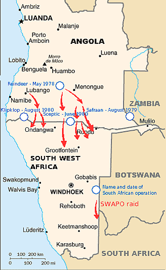 Южноафриканские военные атаковали повстанцев в провинции Кунене 12 мая 1980 года. Министерство обороны Анголы обвинило правительство ЮАР в ранении и убийстве мирных жителей. Девять дней спустя Южно-Африканские силы обороны снова атаковали, на этот раз в Квандо-Кубанго, и МПЛА пригрозило ответить военным путём. 7 июня 1980 года Южно-Африканские силы обороны начали полномасштабное вторжение в Анголу через Кунене и Квандо-Кубанго, уничтожив 13 июня оперативный штаб СВАПО, что премьер-министр ЮАР Питер Виллем Бота назвал «шоковой атакой». Правительство Анголы арестовало 120 ангольцев, которые планировали подорвать взрывчатку в Луанде 24 июня, сорвав заговор, якобы организованный правительством ЮАР. Три дня спустя Совет Безопасности ООН собрался по просьбе посла Анголы в ООН и осудил вторжение ЮАР в эту страну. Президент Заира Мобуту Сесе Секо также встал на сторону МПЛА. Правительство Анголы зафиксировало 529 случаев нарушения южноафриканскими войсками территориального суверенитета страны в период с января по июнь 1980[13].