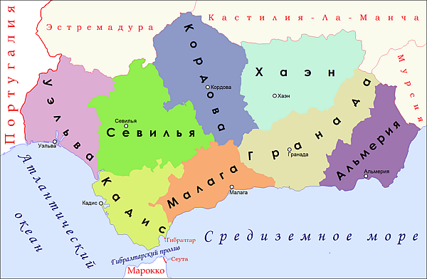 Провинции: Альмерия Кадис Кордова Гранада Уэльва Хаэн Малага Севилья |